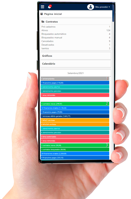 Sim, o sistema disponibiliza gráficos e relatórios onde é possível fazer esse acompanhamento. Já na dashboard é possível acompanhar gráficos contendo informações segmentadas sobre contratos, movimentos de caixa e atendimentos. Dentro do módulo Financeiro temos um relatório de liquidez financeira, onde é possível visualizar dados mensais como valores recebidos, valores em aberto e porcentagem de inadimplências.